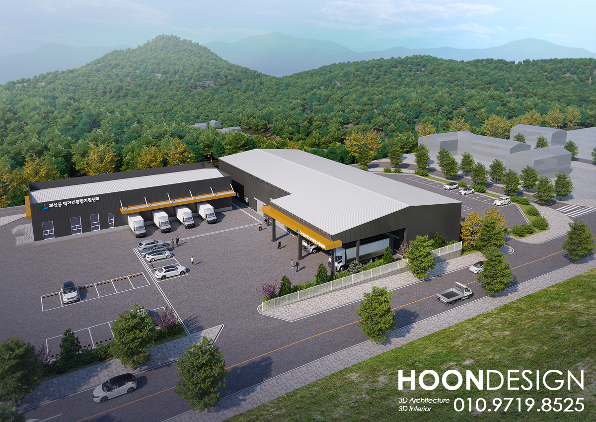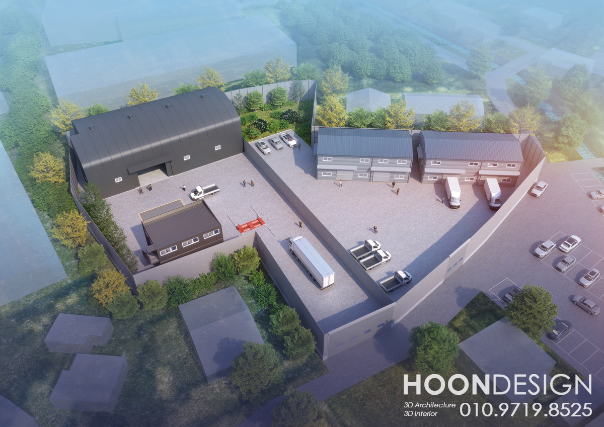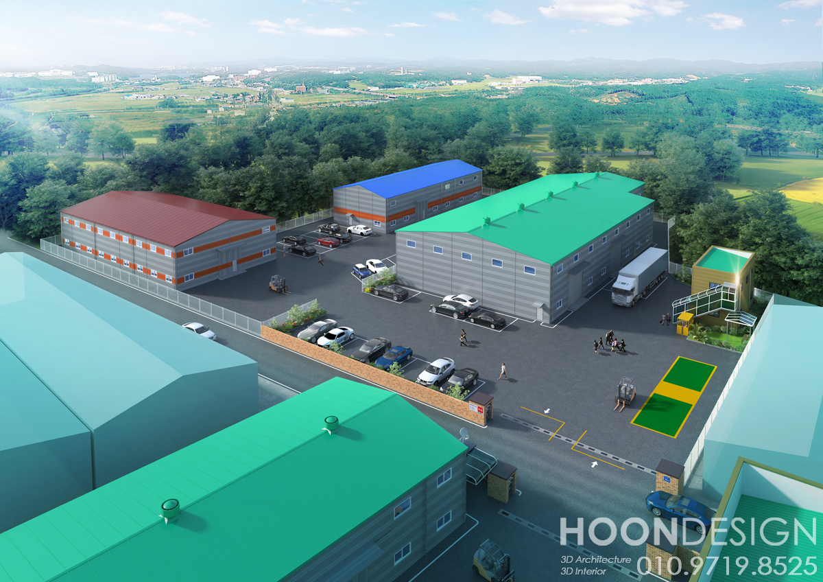 공장계획, 물류창고 신축, 공장부지 분양용 조감도 제작은 훈디자인에서 진행해드립니다!